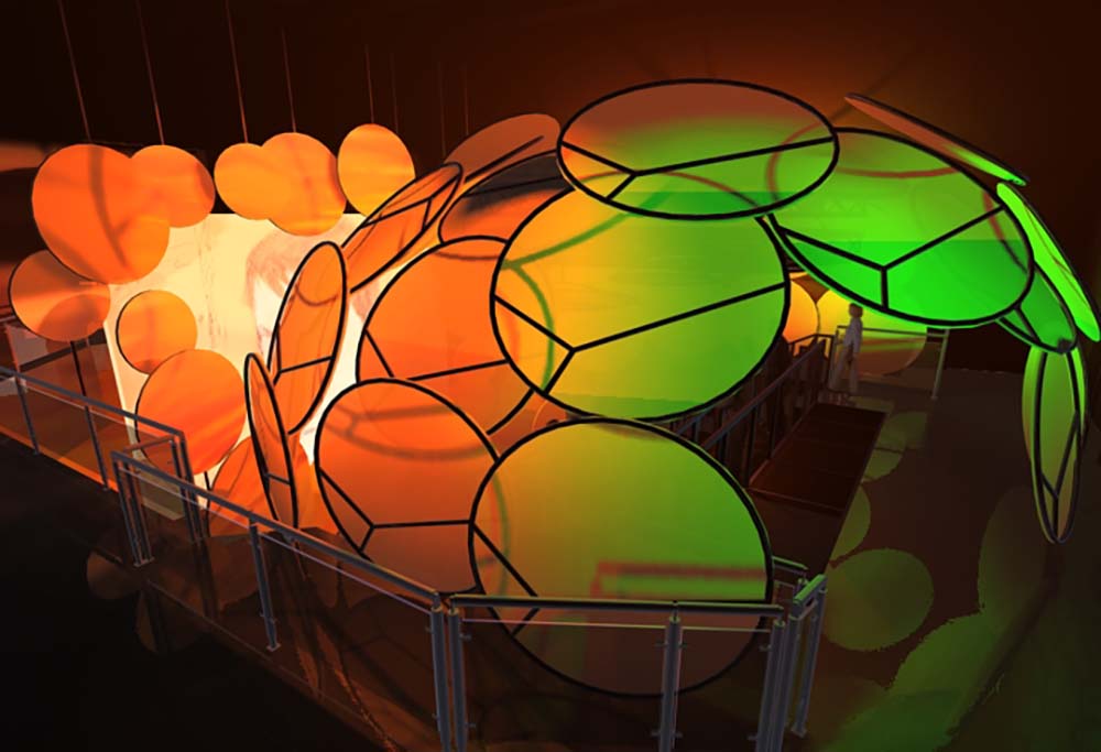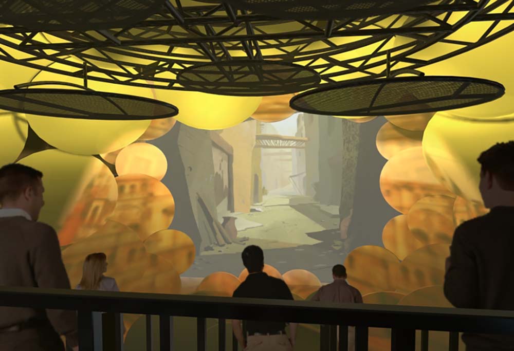 The Transforming Cave is a climactic scene in a multi-media experience called ‘Walking with Buddha’. Guests enter an abstract cocoon-like space where they are immersed in a 360-degree media montage depicting Buddha’s trials and tribulations on his journey toward enlightenment.