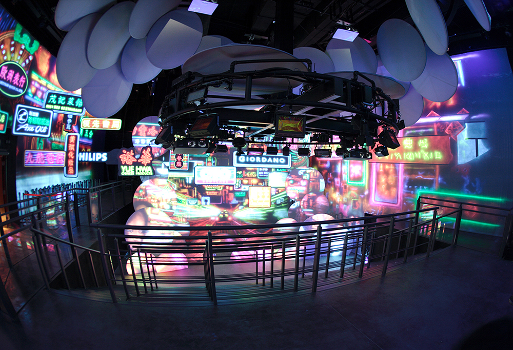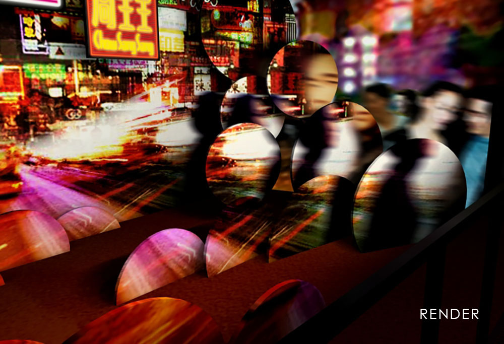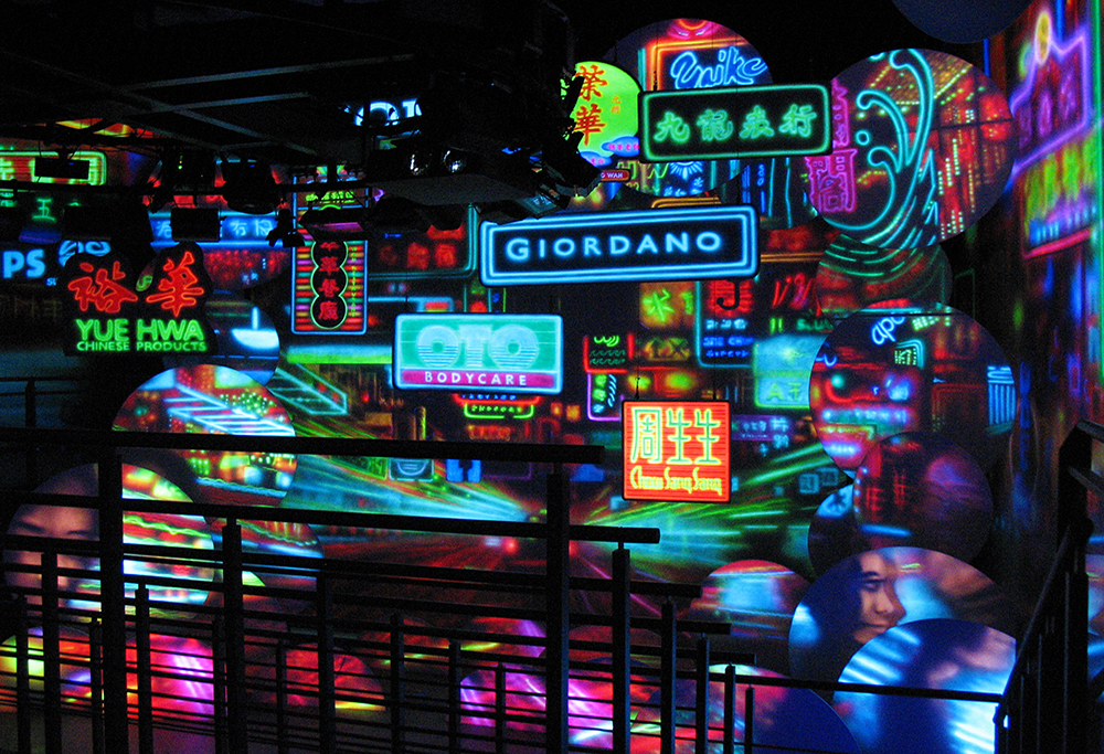 The finale transports guests back to the frenetic, colorful, busy streets of Kowloon in Hong Kong via an invisible blacklight transformation.
